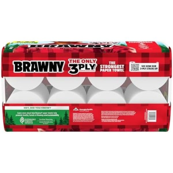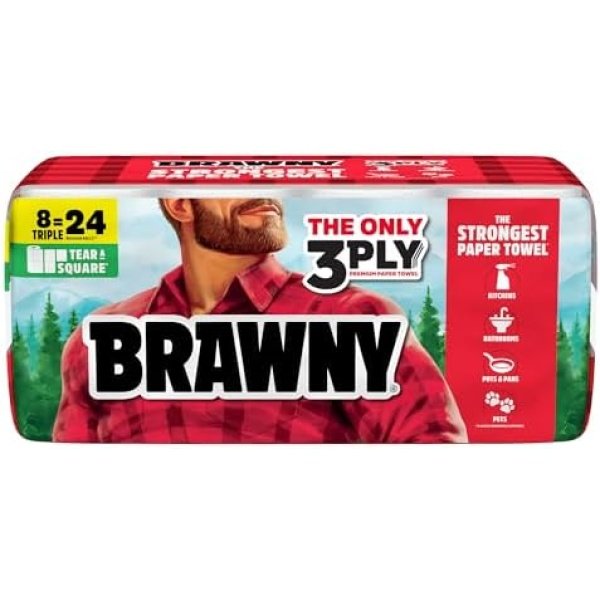 Brawny Tear-A-Square 3-Ply Paper Towels, 8 Triple Rolls = 24 Regular Rolls