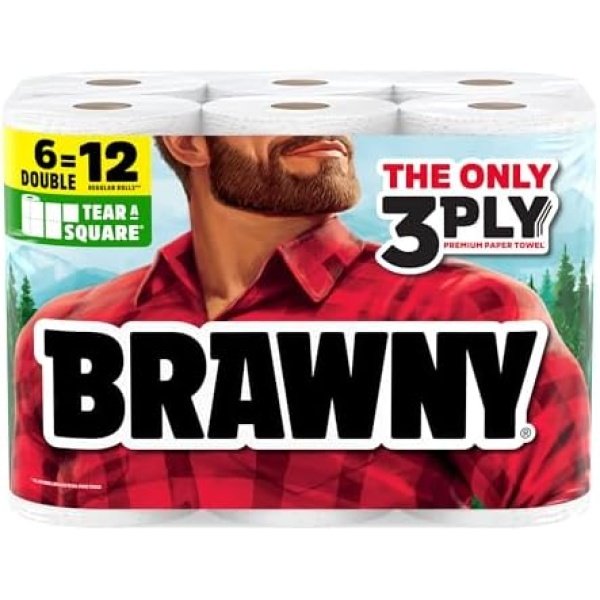 Brawny Tear-A-Square 3-Ply Paper Towels, 6 Double Rolls = 12 Regular Rolls