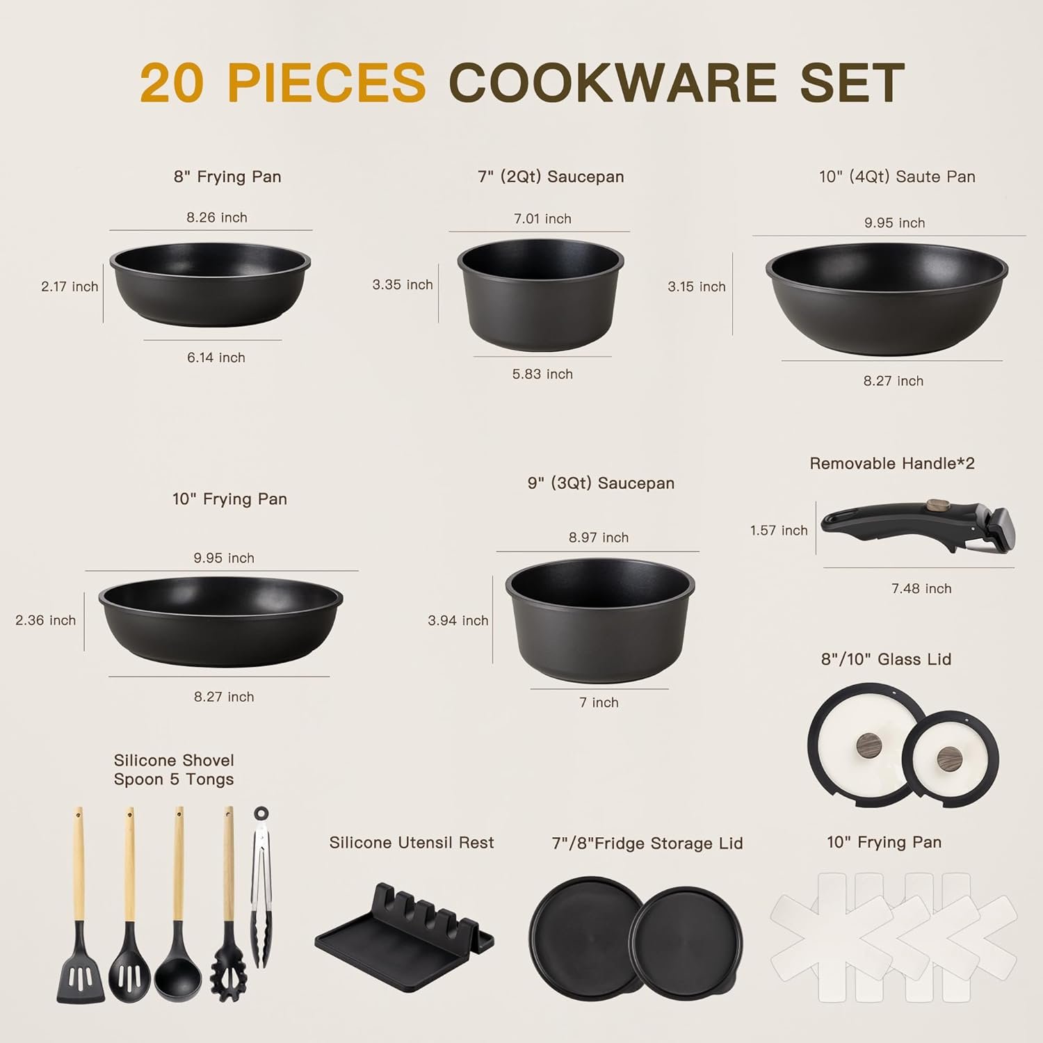 Astercook 20-Piece Pots and Pans Set, Nonstick Cookware Set with Detachable