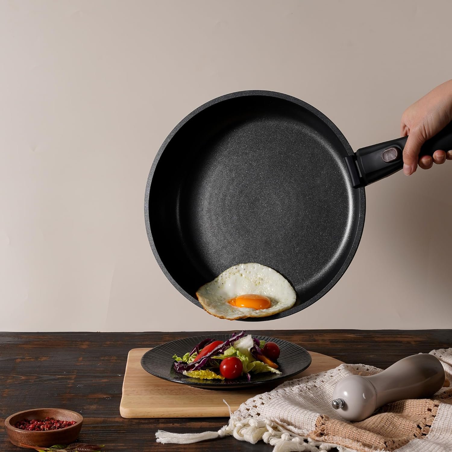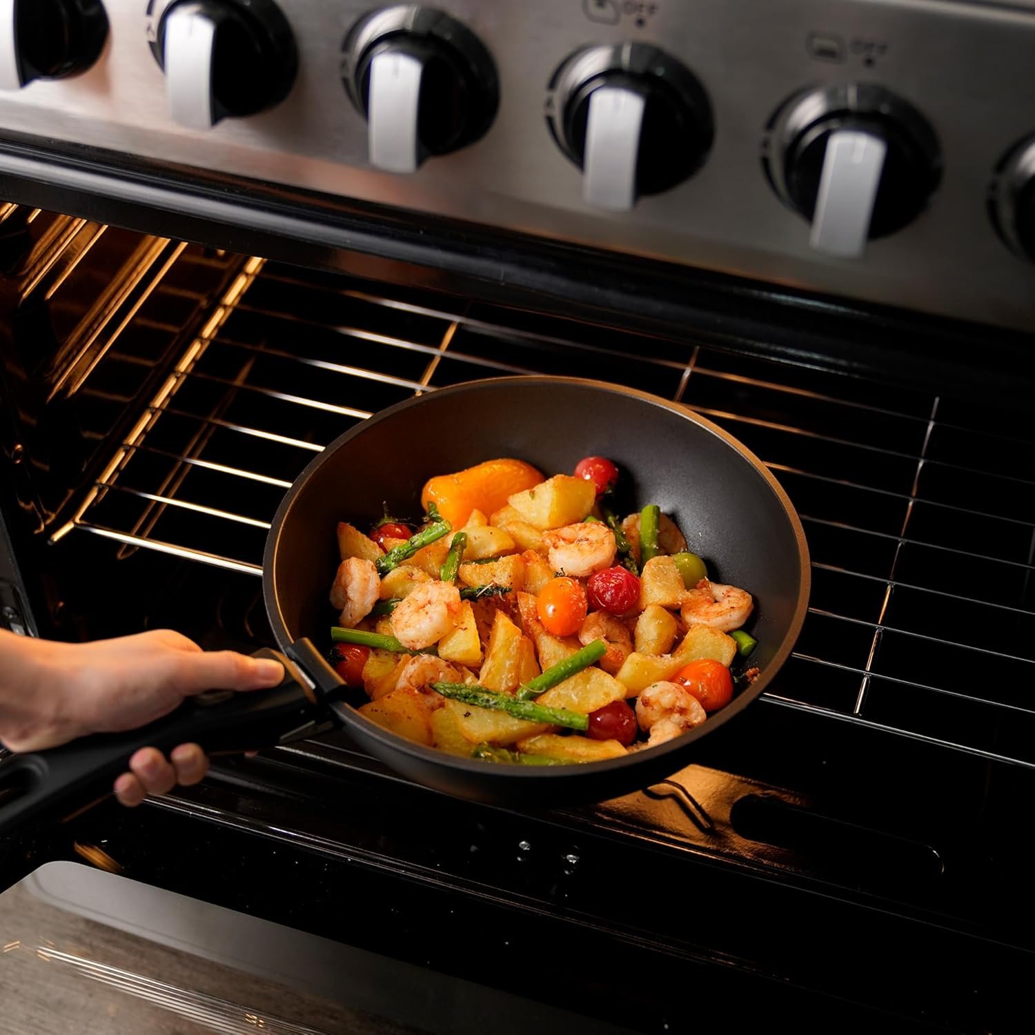 Secure & Removable Handle: The innovative removable handle locks firmly into place, giving you a stable grip for confident cooking. Easily switch between stovetop and oven or detach for compact storage.