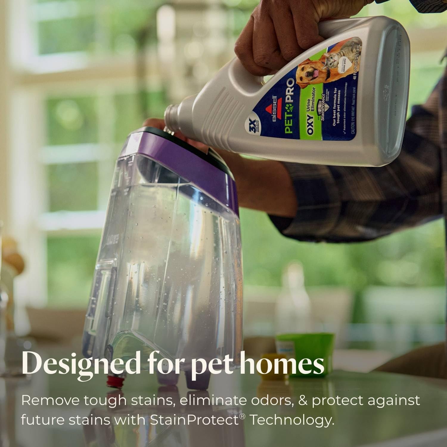 We know pets makes messes. Whether it’s tracked-in mud or bathroom accidents, BISSELL® ProHeat 2X® Revolution® Pet Pro Plus carpet cleaner handles those though pet messes with its exclusive Pet Pro Cleanup System. This system includes a CleanShot® pretreater to remove spots and stains; the 2-in-1 Pet Upholstery Tool to remove pet hair, stains and odors from upholstery, a trial-size of BISSELL® PET PRO OXY Urine Eliminator formula, and an EZ Clean Brush Roll Cover to make maintaining the machine easy. When used in MAX Clean Mode, you get powerful cleaning that outcleans the leading rental*** and leaves carpet dry in about 30 minutes with Express Clean Mode.** All of this cleaning power comes in a lightweight and maneuverable machine with a low-profile foot that gets under furniture. But this machine doesn’t just pick up after pets, it helps save them, too. BISSELL® proudly supports BISSELL Pet Foundation® and its mission to help save homeless pets. When you buy a BISSELL product, you help save pets, too. We’re proud to design products that help make pet messes, odors and pet homelessness disappear.