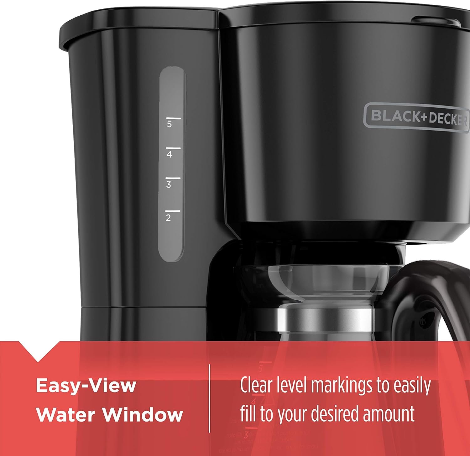Delicious coffee made easy! The BLACK+DECKER 5-Cup Coffeemaker gets going with the flip of a switch heating water to the optimal temperature for full flavor extraction Coffee brews into the improved 5-Cup Duralife glass carafe which is engineered for comfortable handling and drip-free pouring Black+Decker and the Black+Decker logo are trademarks of The Black & Decker Corporation and are used under license Cup equals approximately 5 oz (varies by brewing technique)