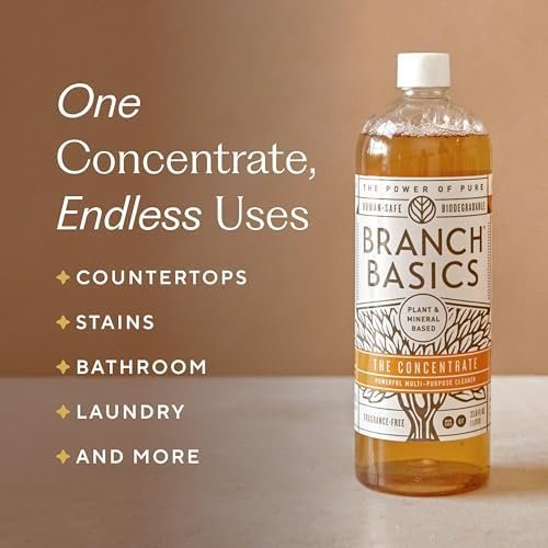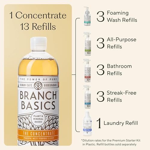 REUSE & REFILL FOR SUSTAINABLE CLEANING: Keep your cleaning routine sustainable by refilling the Branch Basics cleaning bottles (sold separately) with Concentrate! Simply add water and Concentrate to create more cleaning solutions, reducing waste while maintaining a safe and effective home environment. One bottle of Concentrate can create multiple cleaning products at different dilution ratios, making it a sustianable and cost-effective way to maintain your cleaning routine.