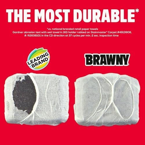 UNMATCHED STRENGTH AND ABSORBENCY: Tackle tough spills and messes with the new Brawny 3-Ply paper towel; the only nationally branded retail paper towel roll with three plies; providing superior strength, absorbency, and durability
