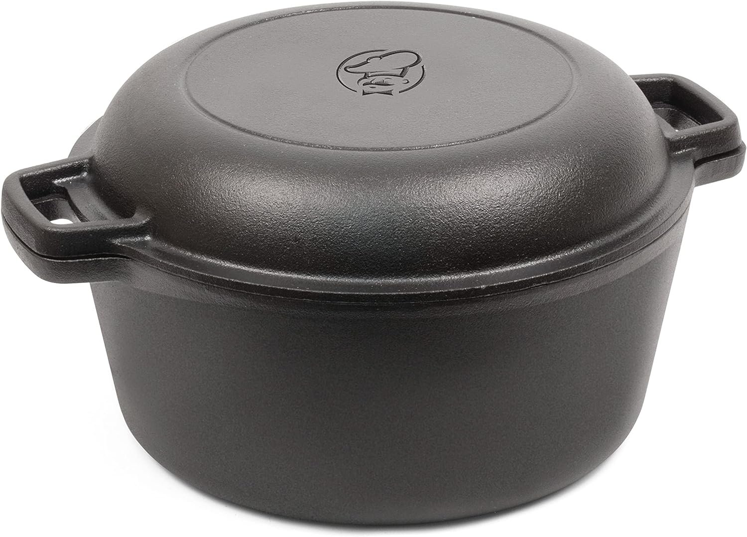 2-IN-1 COMBO: The shallow lid on this COMMERCIAL CHEF cast iron Dutch oven doubles as a skillet, while the deeper pan is perfect for soups, stews, bread and more! Use on a stove top, in an oven, broiler or even outdoors at a campfire. This cast iron Dutch Oven offers consistent, even heating and great heat retention.