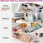 【MULTI-USE】Measuring 2 inches high, these makeup drawer organizer for vanity could fit with all kinds of drawers, such as vanity/bathroom/kitchen/office drawers/ craft room, ideal for organizing cosmetics, makeup tools, hair accessories, jewelry, pins, office supply, craft supplies, utensils, etc.