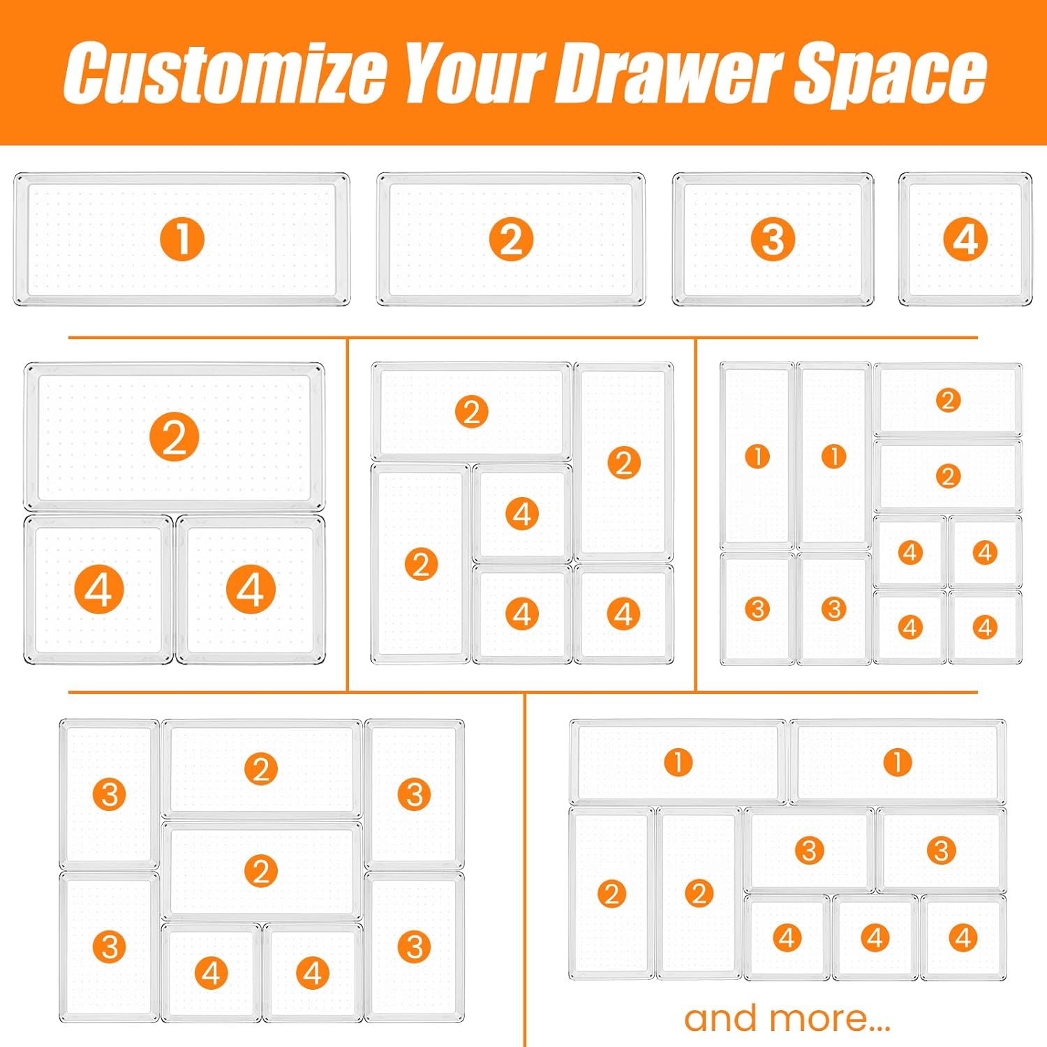 【Make Everything Organized】 Perfect for organizing makeup tools, bathroom supplies, office supplies, crafts, kitchenware, tableware, tools, etc. You can customize combinations to store items and organize drawers for your specific needs.