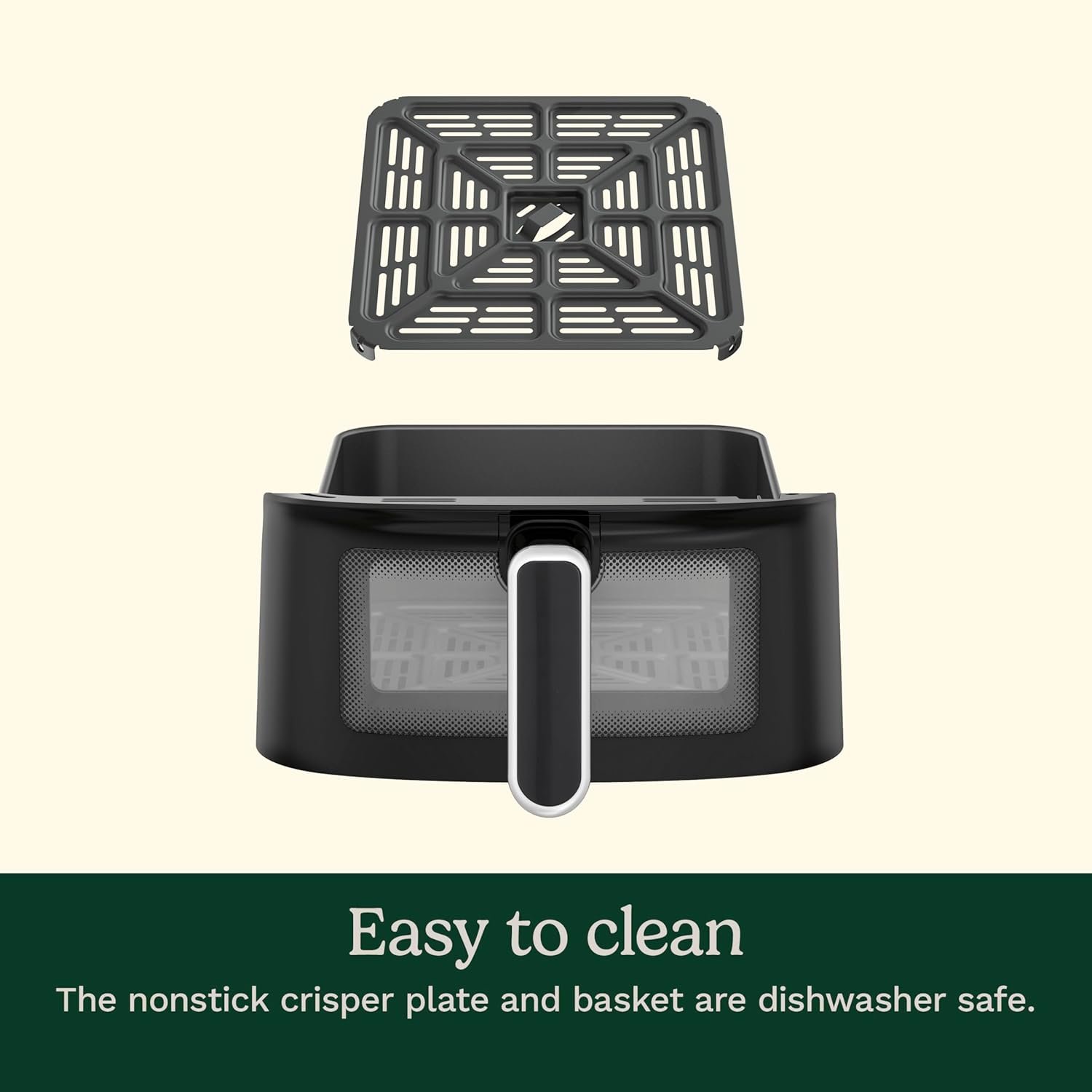 HIGH HEAT, HIGH PERFORMANCE: The basket air fryer offers 1800 watts of power, adjustable temperature settings up to 450°F, and an automatic warming mode post-cook.