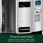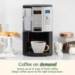 Cuisinart lets you have your coffee on demand! The Cuisinart DCC-3000 Coffee on Demand dispenses one cup at a time with an easy to use actuator. Hold up to 12 cups of coffee in the double-wall coffee reservoir. The easy to read coffee gauge lets you know how many cups of coffee are left, and the included charcoal water filter keeps your coffee tasting great. The DCC-3000 makes coffee easy– its fully programmable with 24-hour advance brew start, programmable auto shutoff, self-clean, and a 1-4 cup setting to brew smaller amounts that still taste delicious. Remove both the coffee and water reservoirs for easy clean up.