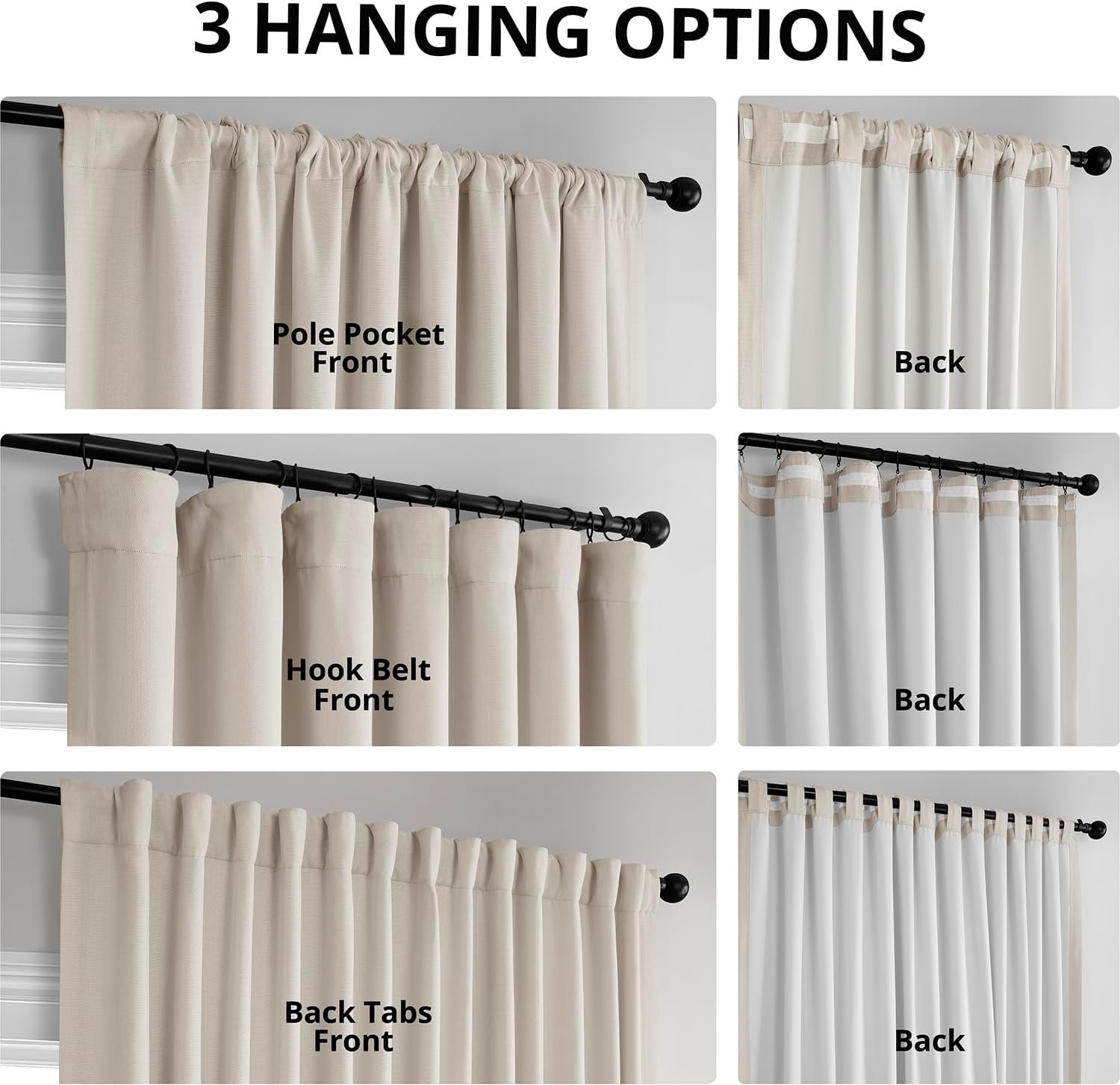 USER APPLICATION or APPLICATION INSTRUCTIONS – These linen curtains for living rooms and bedrooms can be hanged as per choice in 3 different settings as preferred to compliment the surroundings and furniture settings: Curtain panels can be sheered on a rod using the pocket Hang with back tabs for a fixed ripple look Attached to rings using the belt and drapery pins NOTE: Hooks Not Included in the package