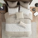 Trendy Boho Bedding – Modern comforter set showcasing geometric design in subtle colors and a trendy tufted chevron chenille for added texture and dimension. This creates a subtle yet stylish accent, perfect for a modern bedroom décor update