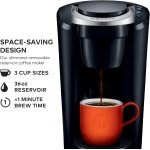 Space saving. Crowd-pleasing. The slender and stylish Keurig K-Compact single serve coffee maker offers consumers a space-saving design to fit their countertop, but still delivers the delicious taste and unparalleled convenience that the Keurig brand is known for. Designed to leave the smallest footprint possible, the Keurig K-Compact brewer in Black is just over 8 inches wide, leaving you plenty of space on your countertop without sacrificing a thing. Brew 6, 8, or 10 oz. of your favorite beverages in under a minute. Choose from hundreds of delicious K-Cup pod varieties coffee, tea, hot cocoa, iced beverages, and more and enjoy a perfect cup, every time. Or brew your own ground coffee with the Keurig Universal My K-Cup Reusable Coffee Filter (not included). The Smart Start feature heats and then brews in one simple process for even more convenience. The K-Compact brewer has a removable drip tray to accommodate travel mugs, and its 36 oz. removable water reservoir allows you to brew multiple cups before refilling.