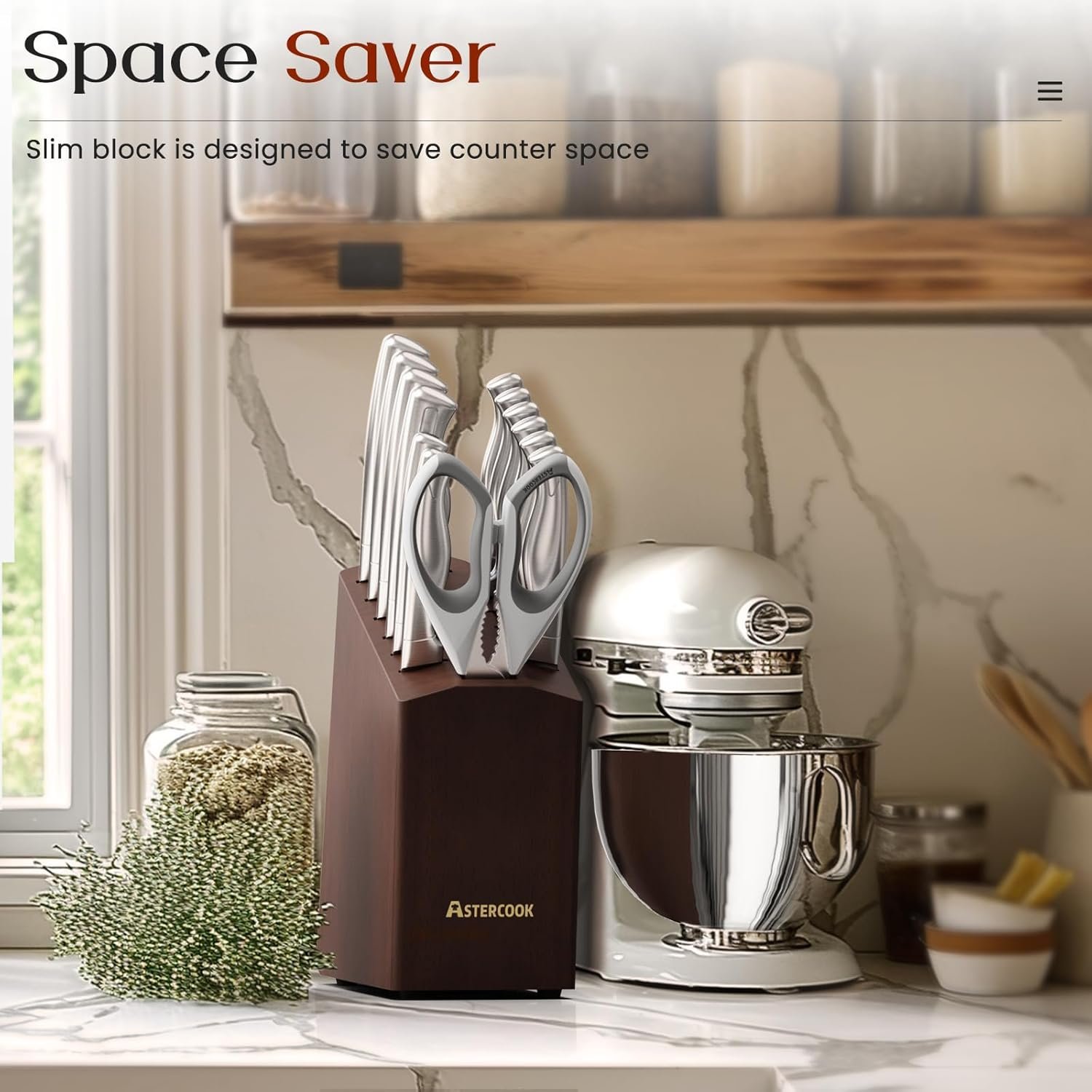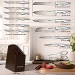 Knife Set, Astercook 15 Pcs Knife Sets for Kitchen with Block, Dishwasher Safe