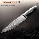 【Dishwasher Safe Sharp Knife Set】 Each knife is dishwasher tested 999 times. Exclusive patented anti-rust technology ensures that they remain in the best condition after intense rinsing in the dishwasher. Enjoy the pleasure of cooking and then easily restore your kitchen to a tidy state.