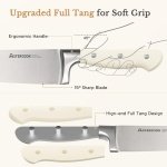 【FULL-TANG ERGONOMICS】: The seamless full-tang handle isn’t just a grip—it’s an extension of your hand. Forged as one unbroken steel core, it balances heft and agility, turning marathon chopping sessions into effortless artistry. No wobble, no fatigue—just unwavering confidence, whether you’re julienning herbs or carving Sunday roast. Independent lab tests confirm 30% lower fatigue rates vs. partial-tang knives.