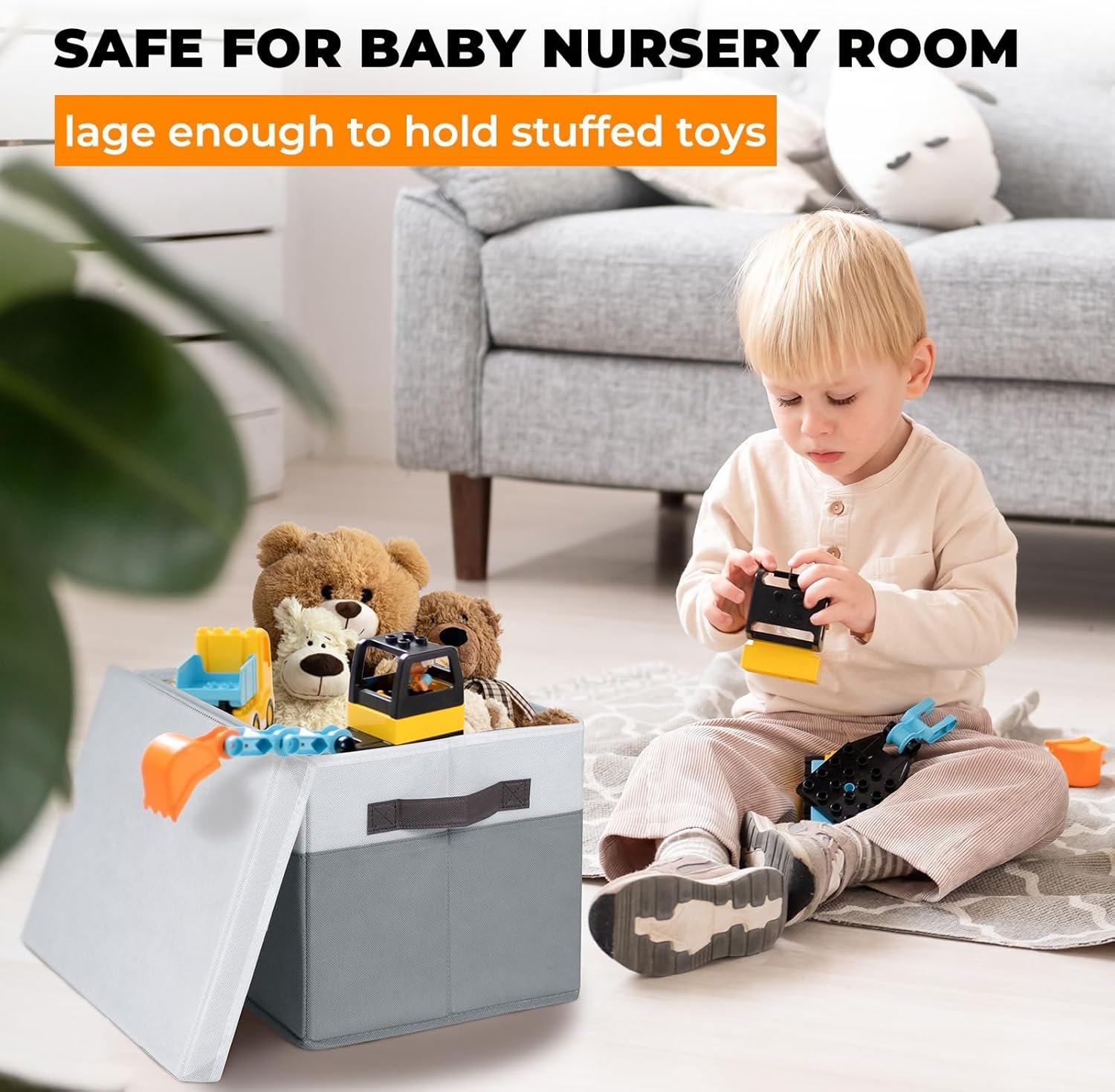 [NO MORE WORRIES ABOUT Quality and Smells] Our storage containers are made of tear-resistant fabric with odorless plastic panels, ensuring reliable durability and security for baby nursery organization. Each totes for storage has two strong handles, capable of holding up to 21 lbs heavy supplies.