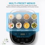 Multiple Preset Menus: This 6-cup uncooked rice cooker offers 8 preset menus: Quick rice, White rice, Brown rice, Mixed Grain, Congee, Soup, Oatmeal, and Steam, catering to a small family of 2-4. The Congee, Soup and Steam menus support up to 120 minutes of timer settings.