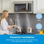 The smart Midea over-the-range microwave oven with 19 auto menus brings you easy and creative dinner preparing experience. Everyone can perfectly finish a rich dinner with our one-touch-cook panel. You can select the heating power from 1 to 10 according to your cooking need. The 1.7 cu.ft capacity allow you to freely prepare your family dinner with big rotisserie chicken. Of cause it can easily handle your single dinner like heating pizza. Also, the adjustable fan speeds and the bright cooktop light ensure you the clear cooktop in your whole cooking journey.
