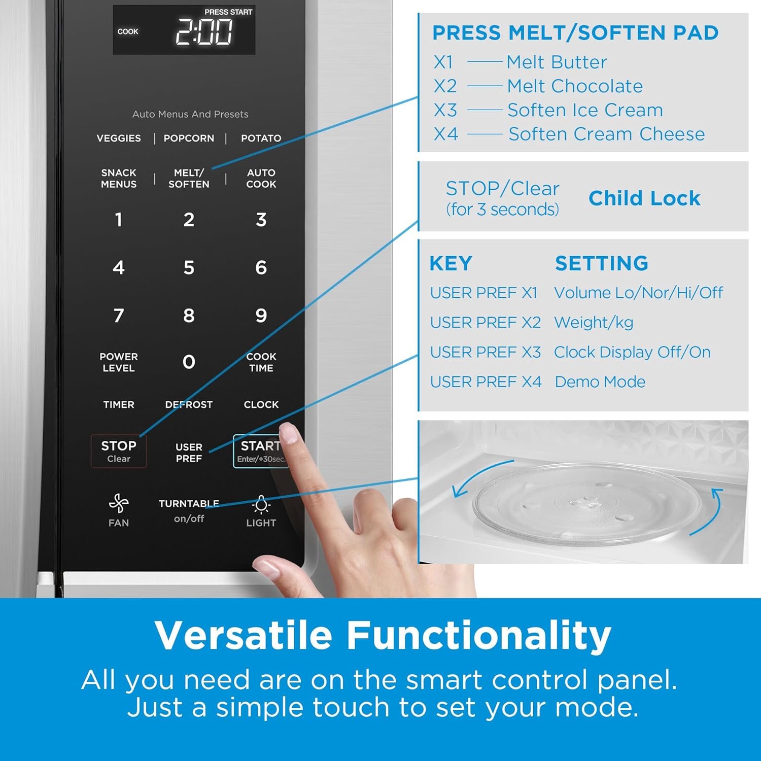 One-touch-cook with 18 Auto Menus, and you can make popcorn, pizza, defrost, soften cream cheese, rice, potato, and so on. Feel free to create delicious dishes efficiently and easily.