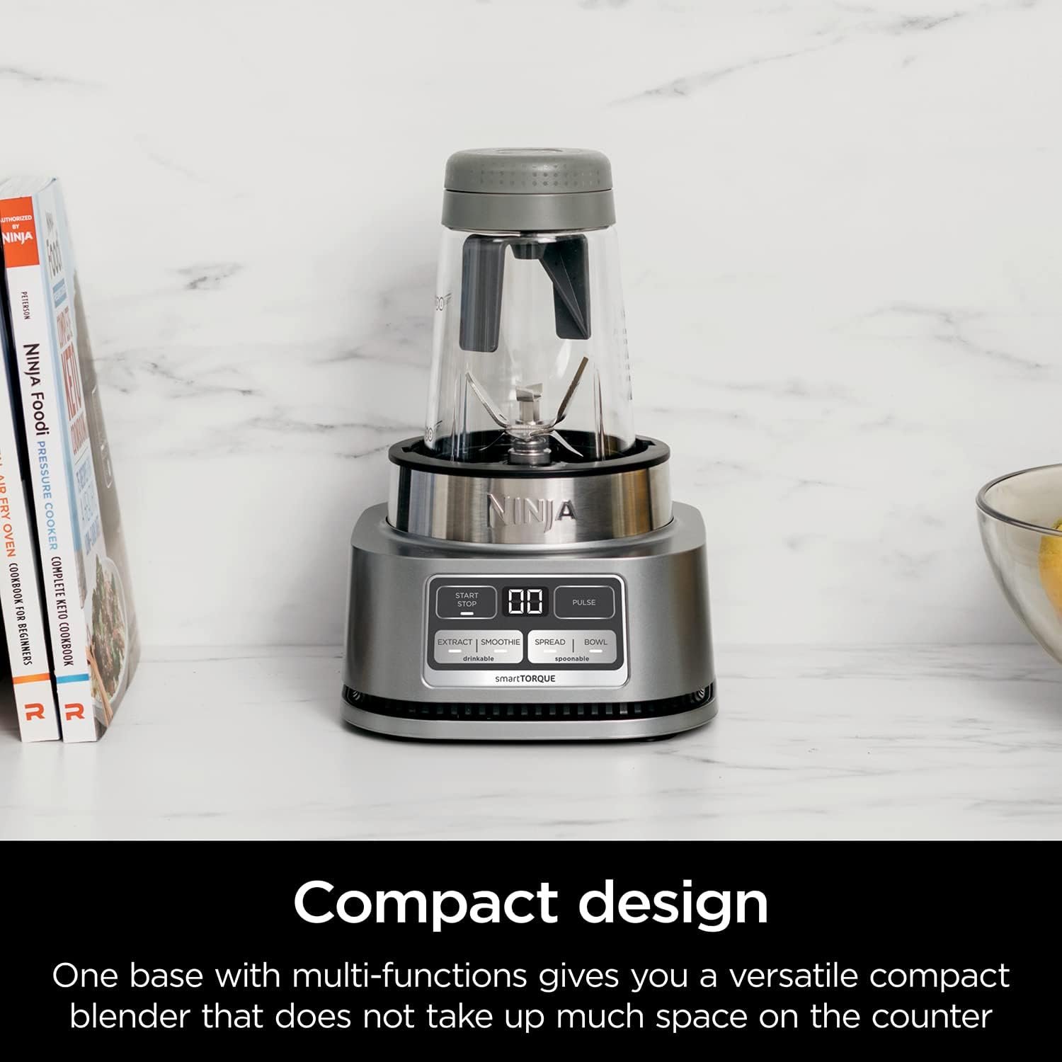 Ninja Foodi Smoothie Bowl Maker and Nutrient Extractor* with smartTORQUE is designed to blend and power through the thickest ingredients at high speed and never stall. One base with multi-functions. The Ninja Nutrient Extraction* Cup and Spout Lid for smoothies and extractions. The Smoothie Bowl Maker with built-in tamper powers through frozen foods with less liquid for thick smoothie bowls and nut butters. 1200-peak-watt power-dense motor.