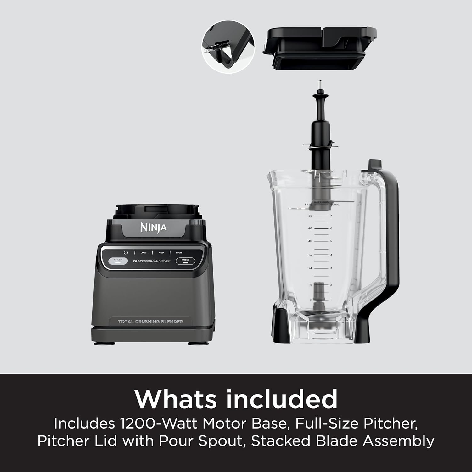 WHAT’S INCLUDED: 1200-Watt Motor Base, 72-oz. Total Crushing Pitcher with Pour Spout, Stacked Blade Assembly, 10-Recipe Quick Start Guide.