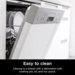 COOKER TO OVEN TO TABLE: Oven-safe pot up to 500 allows you to transfer the pot from the cooker to the oven for a crispy finish. Then, serve directly from the pot with the included rice spoon