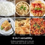 6-IN-1 VERSATILITY: Slow cook, Sear/Saute, Keep Warm, White Rice, Brown Rice, and Pasta