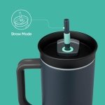 2-in-1, Splash-Resistant lid with Removeable straw, lets you sip or swig