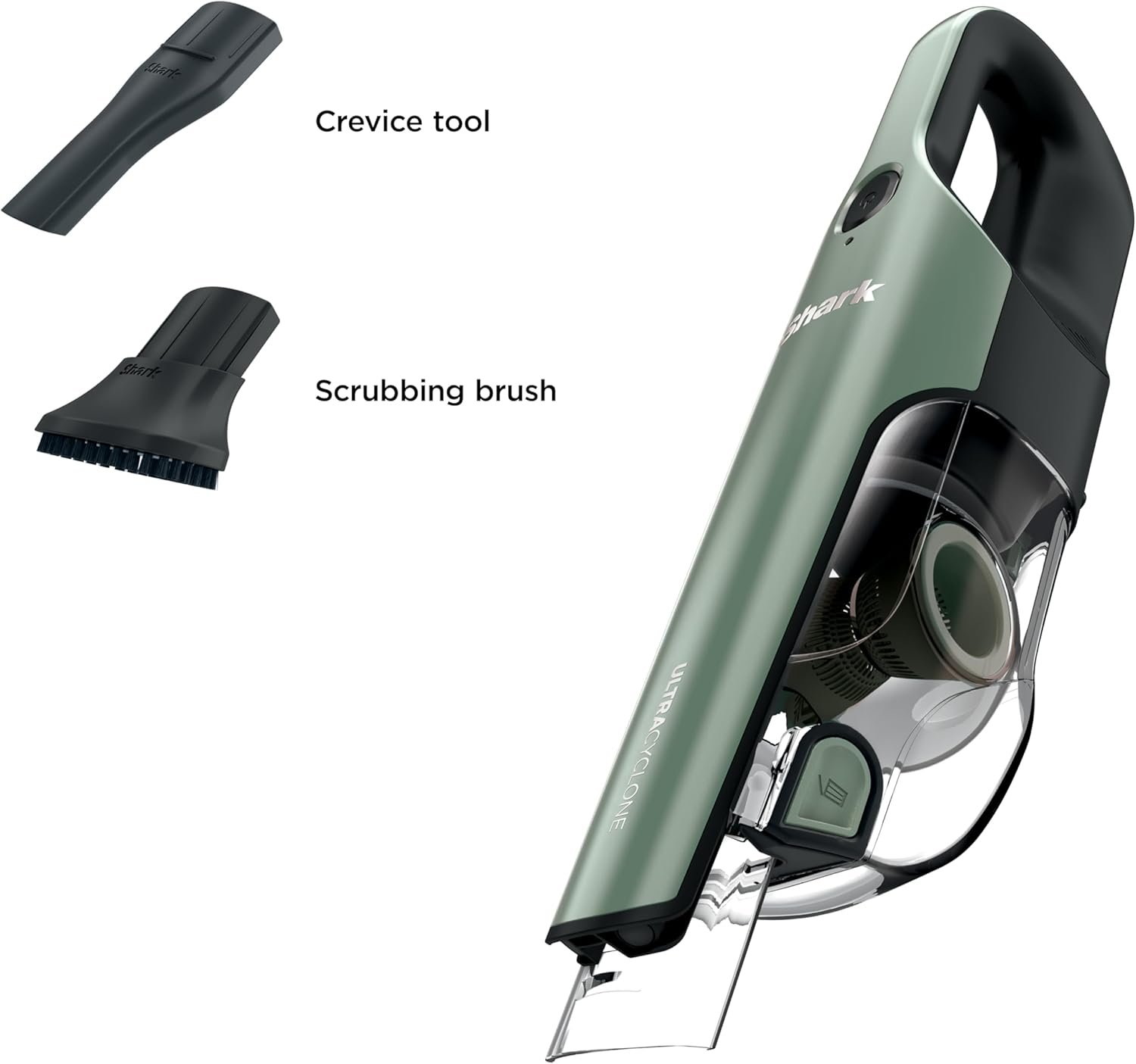 The Shark UltraCyclone Pro is a cordless handheld vacuum that fuses two cyclonic air streams to deliver powerful suction and long-lasting motor life. It includes a lithium-ion battery for lasting power and performance, a no-mess CleanTouch dirt ejector, a crevice tool and scrubbing brush for hard-to-reach areas, an XL dust cup, and a washable filter, all at only 2. 2 lbs.